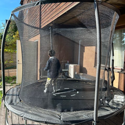 Säljer vår studsmatta som är i bra skick. Själva hoppmattan är hel och spänstig, och skyddsnätet runtom är också i mycket bra skick.
