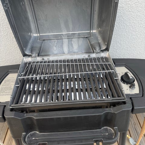 Grill Chef gasolgrill i svart utförande. Grillen har lock och sidobord samt underrede med benstativ. Utrustad med gasolbrännare och reglage på fronten. Passar för utomhusgrillning i trädgård, på altan eller uteplats.