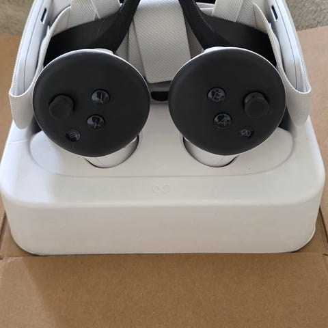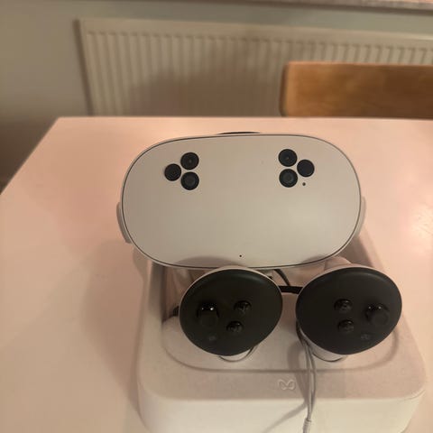 Säljer vårt VR‑headset, två handkontroller, original headstrap, Elite strap, laddkabel samt originalförpackning. Systemet kan användas trådlöst utan separat spelkonsol eller dator.