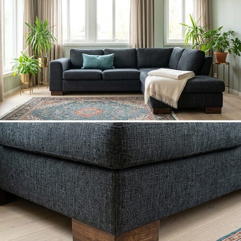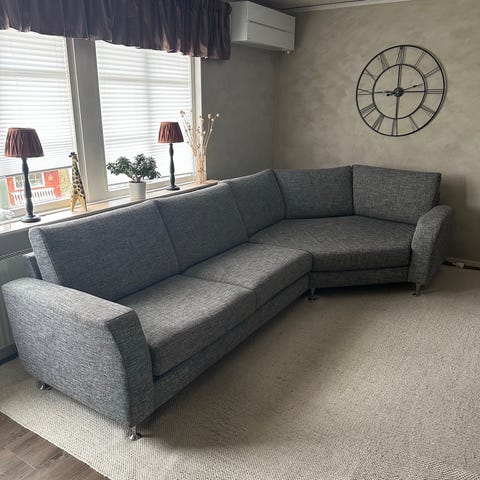 Avtagbar och tvättbar klädsel, alla dynor vändbara utom stora hörndynan.