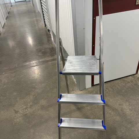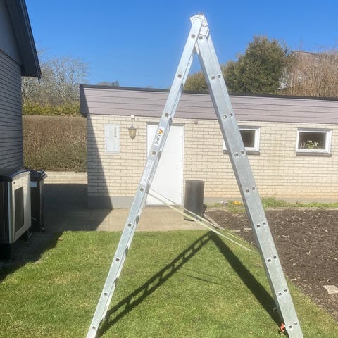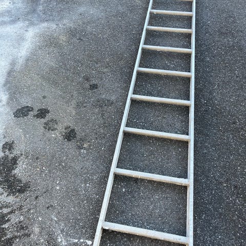 Aluminiumstege med 8 steg. Stegen har breda steg och stödben för stabilitet. Passar för arbete både inomhus och utomhus, till exempel vid målning, underhåll eller andra hushållssysslor där extra höjd behövs. Arbetshöjd. 3,72 m