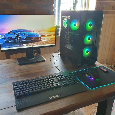Hej! Säljer nu min gaming setup då jag inte spelar längre. Detta är ett monster funkar jättebra och flyter på bra med 5060 grafik kort. Du får med två skärmar,, Steelseries mus, datorn och musmatta, hörlurar (ganska slitna)
