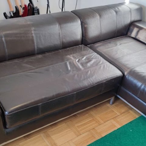Skinnsoffa i fint skick. Hämtas på plats.