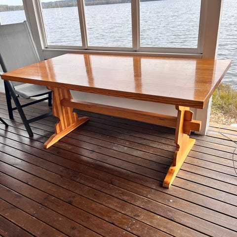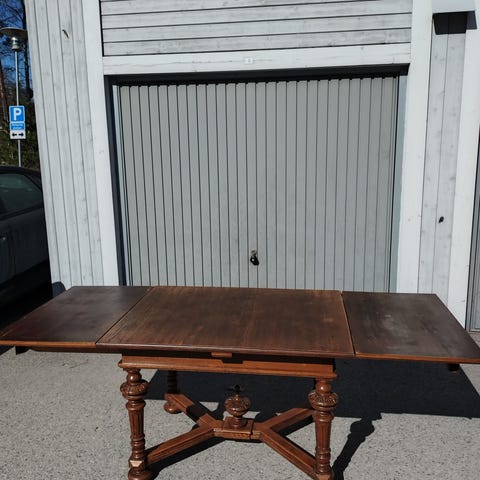 Matsalsbord med två iläggsskivor. 4-10 personer.