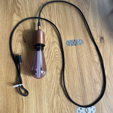 Väggarmatur med e27-sockel och stickkontakt. Lite vit färg på kontakten, i övrigt bra skick.