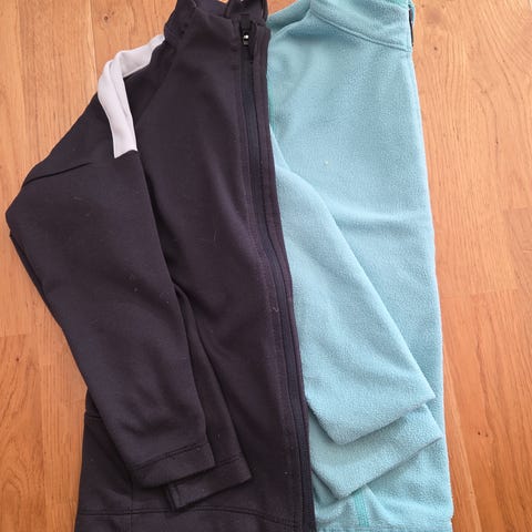 Två Everest jackor för barn, storlek 116,och 128 avsedd för flicka. Jackan är rosa med huva och hel dragkedja framtill. Andra är mork blå. . Resår vid ärmslut och reflexdetaljer på ärmarna. Passar som ytterjacka för vardagsbruk och utomhuslek.