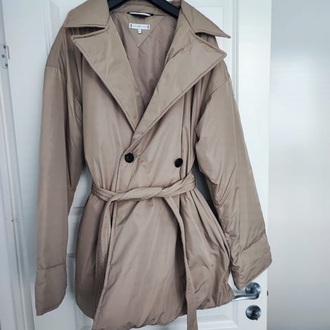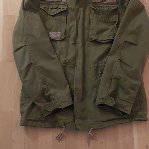 Svart, grå och vitrandig sommarjacka. Knäpps på sneden. Svenska märket Ola ullars
