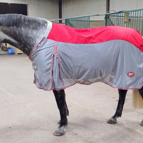 Fint flugregntäcke med regntät överdel och nät på sidorna som är provat någon enstaka dag i hagen.