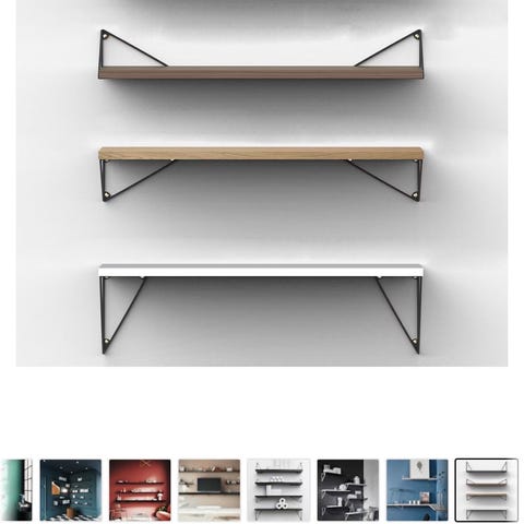 Setet består av två triangelformade konsoler som kan monteras på olika sätt för att bära en hyllskiva. Konsolerna är avsedda för väggmontering och passar som stöd till exempelvis bokhyllor eller prylhyllor i hemmet.