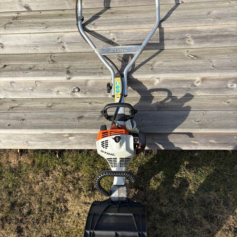 Jordfräs som är sparsamt använd, i bra skick. Gräver upp till 20 cm, man kan själv välja nivå. Stark maskin