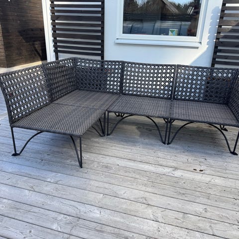 IKEA Sollerön modulsoffa i rotting i två delar. Kuddar kan förvaras i sätena. Använd men i gott skick. Modulerna kan användas tillsammans eller separat. Passar på balkong eller altan.