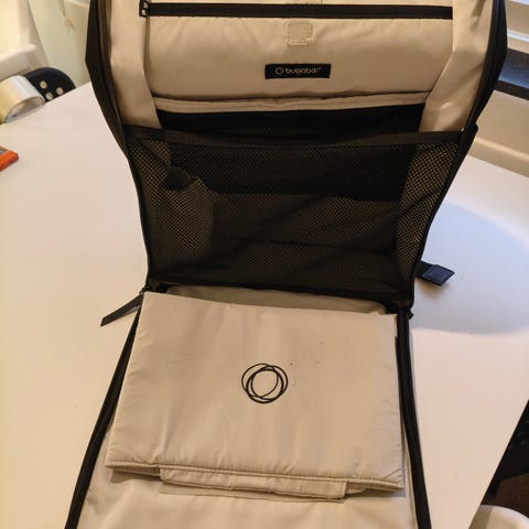 Bugaboo skötväska i fint skick. Medföljer även liten grå Bugaboo necessär samt ihopfällbart liggunderlag för blöjbyten.