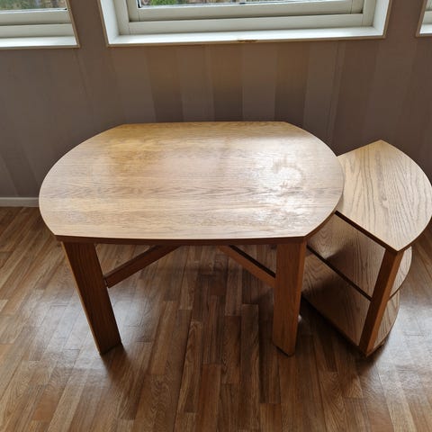 Norrgavel tidningsrullbord – en stilren och funktionell möbel som förskönar vardagsrummet. Perfekt bredvid soffan för böcker, tidningar eller en snabb fika. Utförd i ek med oljad yta, vilket ger en varm och naturlig träkänsla. Designad med fokus på kvalitet, hållbarhet och tidlös form.