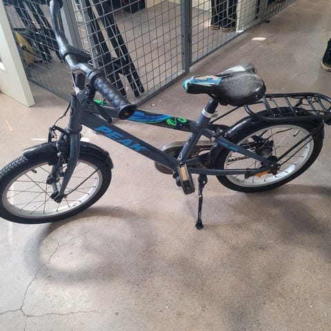 Cykeln är i bra använt skick med normalt slitage. Fungerar fint och är redo att användas direkt. Roliga färgglada pärlor på ekrarna som uppskattas av barn.