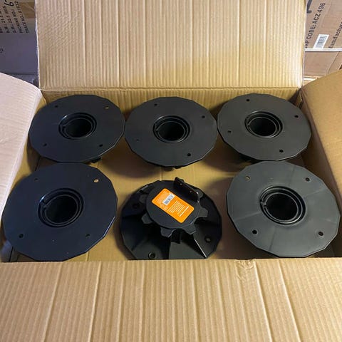 Säljer många terrassfötter justerbara 140-222mm. Marknadspris: 85kr/st, jag säljer de för 40kr och kan lämna billigare vid större köp.