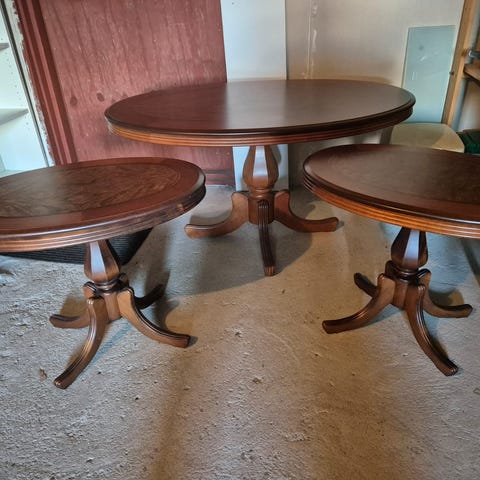 Soffbord med två små sidobord. På bild dock bara ett litet bord.