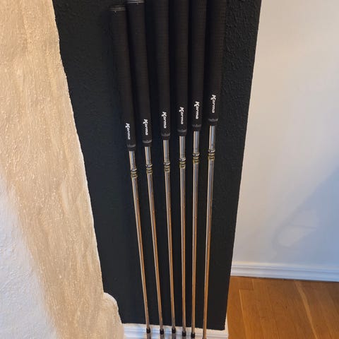 Lättspelat och förlåtande järnset från Titleist i modellen T300 5-P. Införskaffade på Dormy för några år sedan och fortfarande i gott skick. Skaften är True Temper AMT 300 med styvheten regular. Original grepp sitter på samtliga klubbor och är i bra skick.
