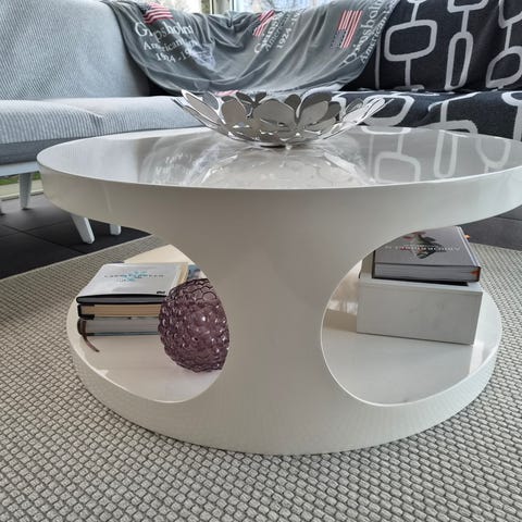 Runt soffbordset marmormönstrad skiva metallunderrede