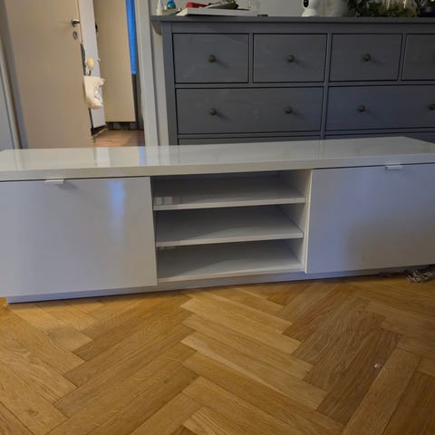 Skänker nu min tv bänk då jag köpt ny. Ena luckan till vänster är lös och saknar skruv men går och fixa!