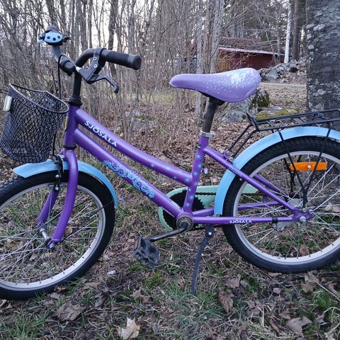 Barncykel 16" i blått och rosa.