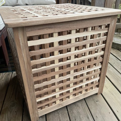 Slitstark byrå från Ikea 2013 i massiv furu. Går bra att använda både i vardagsrum&sovrum. Den kubiska formen gör att den är behändig med en rad förvaring av diverse material som filtar & dukar.