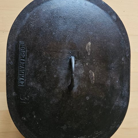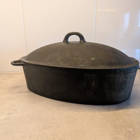 Gjutjärnsgryta med lock oval beige
