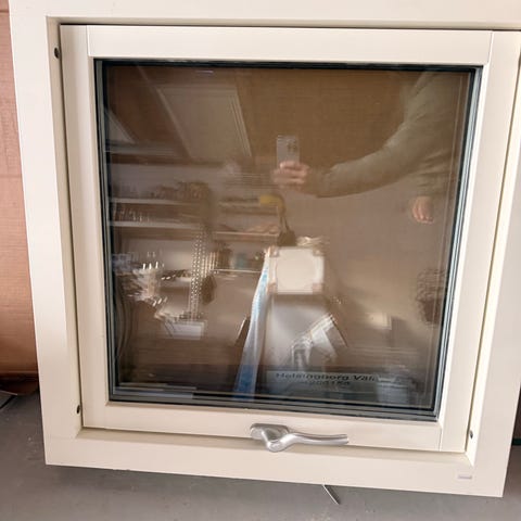 Ett helt nytt fönster med en skarv som saknar färg säljes till lågt pris