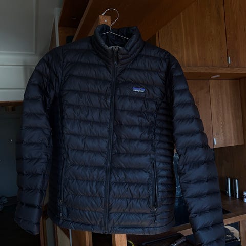 Patagonia jacka för herr i storlek M. Färg grå/grön och material i polyester med quiltad konstruktion. Modellen har hög krage och hel dragkedja framtill. Ärmslut och nederkant är lätt elastiska för bättre passform. Passar som lätt ytterjacka eller mellanlager vid utomhusaktiviteter. I mycket gott skick.
