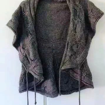 Grå stickad kofta med korta ärmar och en knapp. Koftan har detaljer med paljetter.