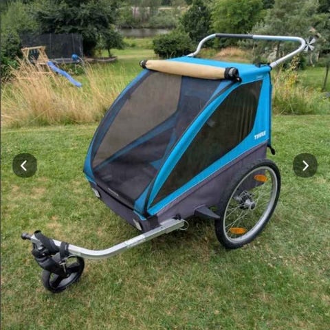 Säljer denna fina rymliga cykelvagn ifrån kvalitativa hamax med 2 sittplatser och förvaring baktill, broms, cykelfäste, extra framhjul, regnskydd, solskydd m.m.