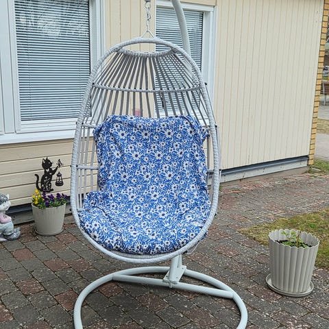 Hängstol/äggstol fåtölj beige med kuddar från bygghemma