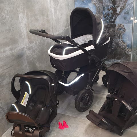 Medföljer regnskydd, myggnät, mugghållare, hjulskydd.
