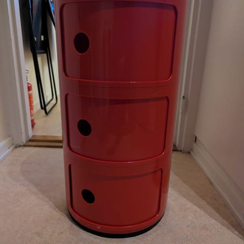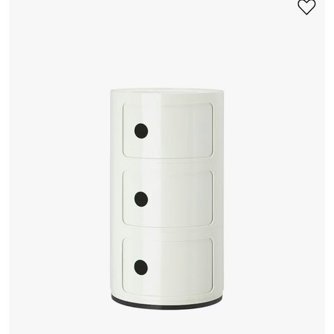 Från hemsidan: Componibili med 3 lådor är en av Kartells klassiker från 1969 som går att se både på MoMA i New York och Centre George Pompidou i Paris. Componibili är ett bord, ett skåp och en byrå i ett. Snygg, tuff och praktisk skapar Componibili karaktär i vilket rum den än står. Componibili är en älskad favorit som är otroligt lättplacerad.