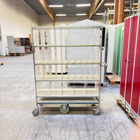 Vi har stora volymer av begagnad och ny lagerinredning. Det finns gott om pallställ, hyllställ, klädskåp, plockvagnar, arbetsskåp, verktygsbord, plastlådor, grenställ mm, på lager.