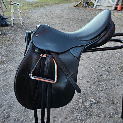 Allround syntet sadel 16.5 i mycket fint skick. Väger knappt någonting. Säljes pga av att den inte passade för tänkta hösten. Pris 800kr