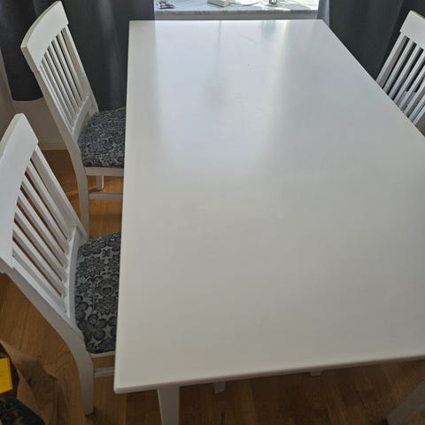 Matbord med 5 stolar. Behöver målas om.
