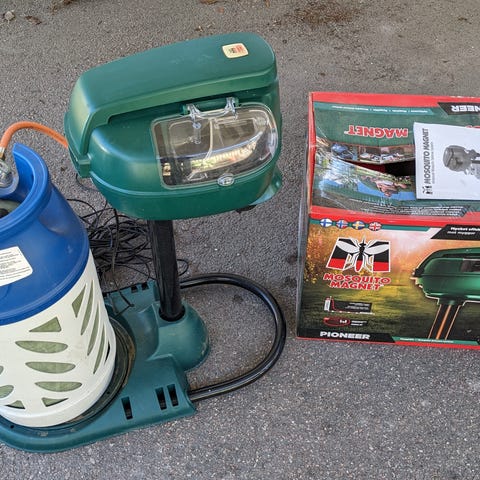 Myggfångare Mosquito Magnet Pioneer. Inköpt juni 2023. Har varit i drift max 3 månader. Säljes med en oanvänd tablett (R-Octenol) och utan gasoltub. Kan visas i drift.