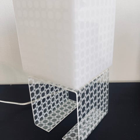 Magnifik ljusblå vägglampa, Olle Alberius, Rörstrand, 60/70-tal i fint bruksskick, inga nagg men några finare krackeleringar, främst på den bakre plattan, se biler, främre plattan är intakt men ett par mörkblå knappnålsprickar i glasyren. Samt har fel lampa använts någon gång så plasten har smält lite, inget som syns eller påverkar funktionen. Strömbrytare på sladden samt ojordad kontakt.