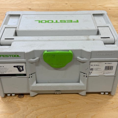 Festool dammsugarslang RS-HW D 36-Plus med systainer i hårdplast. Slangen är flexibel och har grön/svart mönstring. Förvaringslådan (systainer) är stapelbar och har bärhandtag samt lås på framsidan. Produkten är avsedd för anslutning till Festool dammsugare och elverktyg vid slipning, sågning eller annan dammande bearbetning där uppsamling av damm och spån behövs.