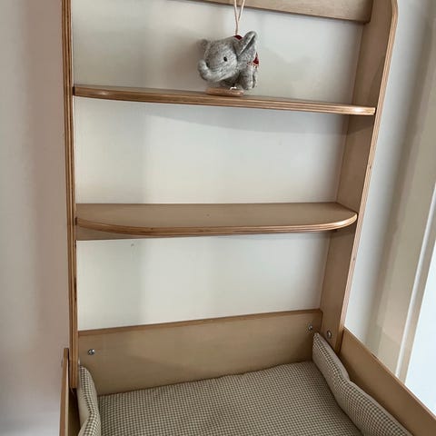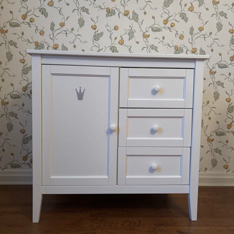 Flexibelt skötbord i vitt från Troll Nursery. En låda och två öppna ribbhyllor ger bra förvaringsmöjligheter. Praktisk och stilren skötbord i lackerad björk. Det finns en låda och två öppna hyllor för förvaring av blöjor, tvättlappar och kläder. De extra höga kanterna gör skötbordet säkert och tryggt.