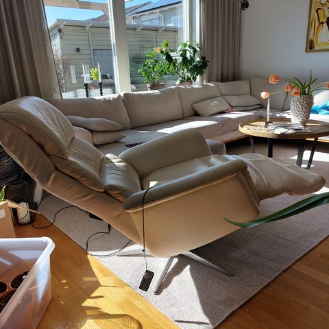 reclinerfåtöljer i skinn & el,flera lägen. Fina