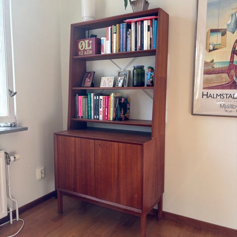 Retro danskt bokhylla i väldigt bra skick. Materialet är av robust teak.