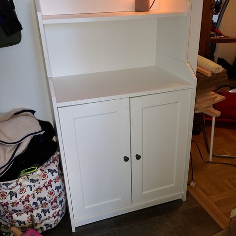 Finns ett hål på baksidan,då jag var tvungen att sätta det över en väggkontakt. Lätt att fixa.