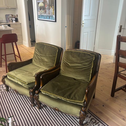 Skick: bruksskick med visst slitage, främst på sitsen på den gröna (se bilder). Fullt funktionella och mycket charm kvar.