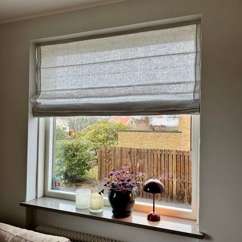 Himla hissgardin i ljus vit nyans. Gardinen är tillverkad i linne och monteras ovanför fönstret för att kunna hissas upp och ner efter behov. Passar i sovrum, vardagsrum eller kök där ett lätt och luftigt ljusinsläpp önskas. Gardinen ger ett mjukt intryck och fungerar som insynsskydd samtidigt som dagsljus släpps igenom.