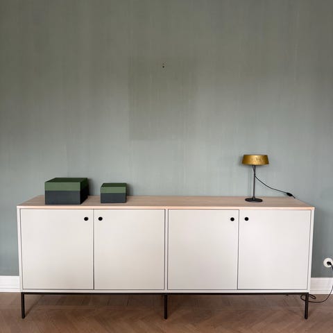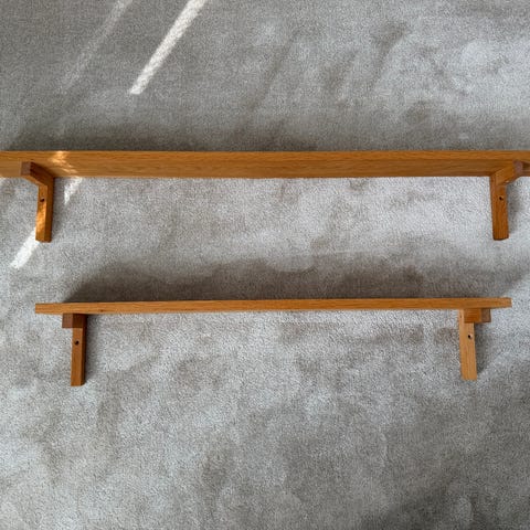 Vitlaserad björk, ngt tjockare hyllplan ,2,7 cm. Lite slitage i ytskiktet som kan laseras över.