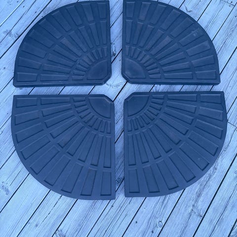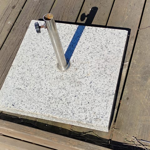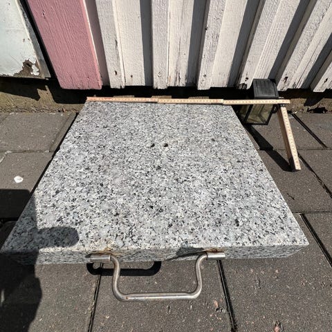 Tung parasollfot i betong, 8-kantig fot, 8 cm höjd, 57 cm i diameter, rör för parasollet 5cm x 29,5 cm.