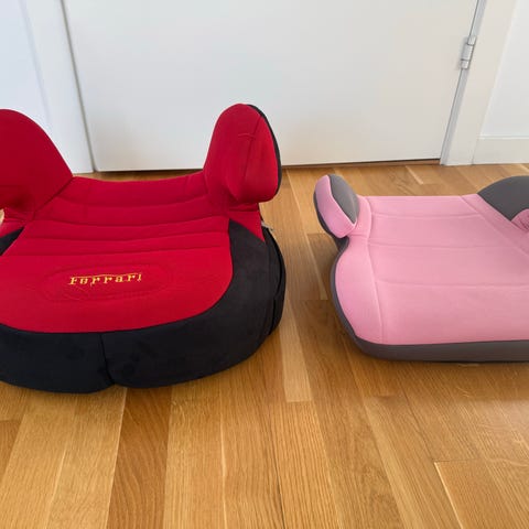 Två stycken bälteskuddar i rosa färg, med isofix. 150kr styck eller bägge för 250kr.