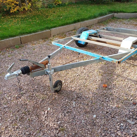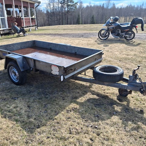 En liten, mycket stabil släpkärra som behöver ny eldragning. För övrigt funkar den bra, även däcken är okey. Har varit avställd sedan 2021.
