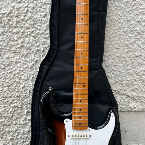Fender JV Squier från 1983. Det andra året de gjordes. En fin gitarr med ett gott sound. Jag har ägt den i några år och är andre ägaren. Kommer i Originalcasen.